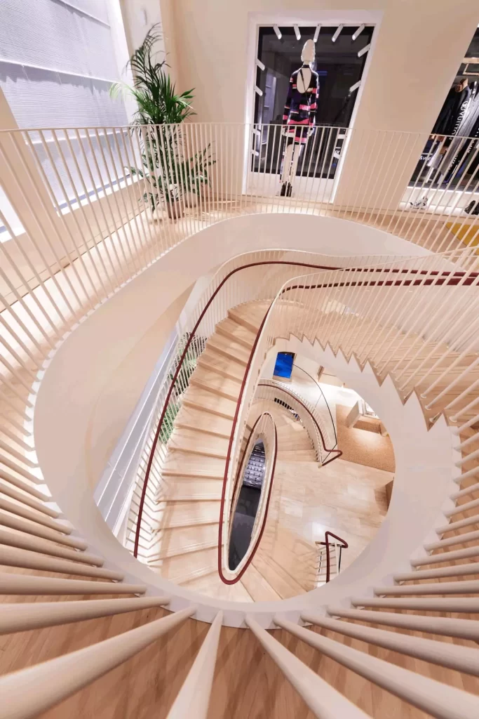 L’intervento ha riguardato il progetto costruttivo strutturale della scala scenica in acciaio di collegamento tra i tre livelli del punto vendita e dei due solai in acciaio da installare al piano terra e al piano primo.